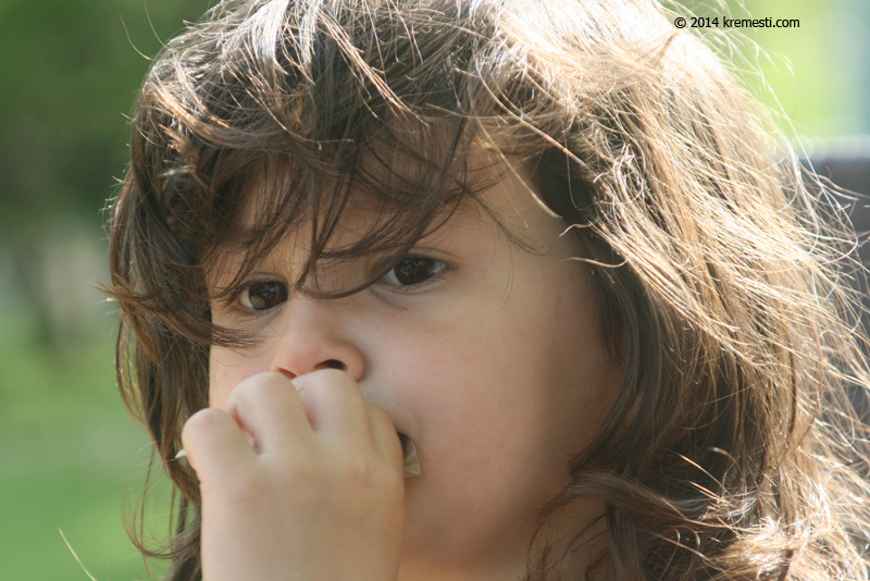 Lulu eating sugar at Grebnata Baza in Plovdiv.